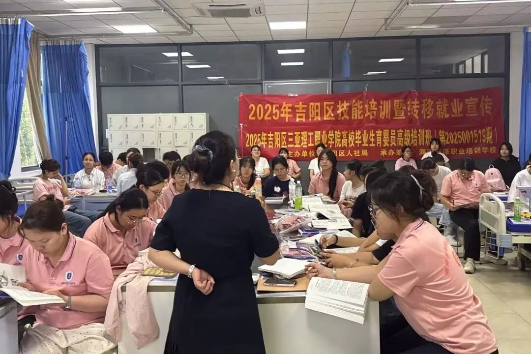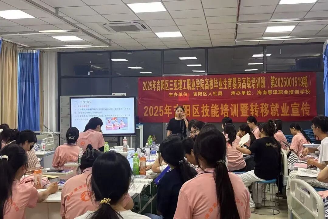 旅游与康体产业学院于2025年7月1日至7月11日期间同海口市鑫晖职业培训学校、海南惠泽职业培训学校开展2025年7月高校应届毕业生婴幼儿发展引导员(高级)培训。本次培训涉及学生180人,拟于7月13日开展培训资格认定工作。