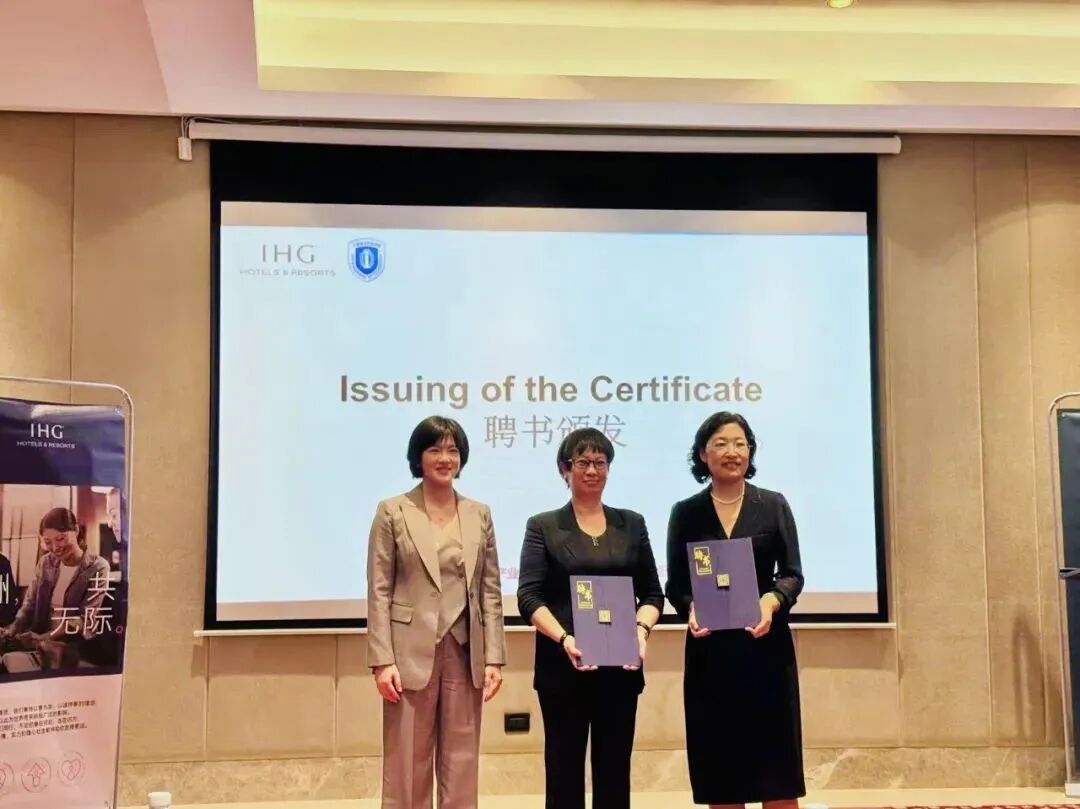 本次合作的企业导师团队,汇集了洲际集团旗下奢华、高端和品质三个级别的酒店行业的精英:三亚海棠湾天房洲际度假酒店、三亚清水湾金普顿及英迪格酒店群、三亚亚龙湾华邑酒店群、三亚湾假日度假酒店。多元品牌覆盖为学生提供了全景式、阶梯化的培养平台。仪式上,产业学院领导为行业导师们颁发了聘书。
