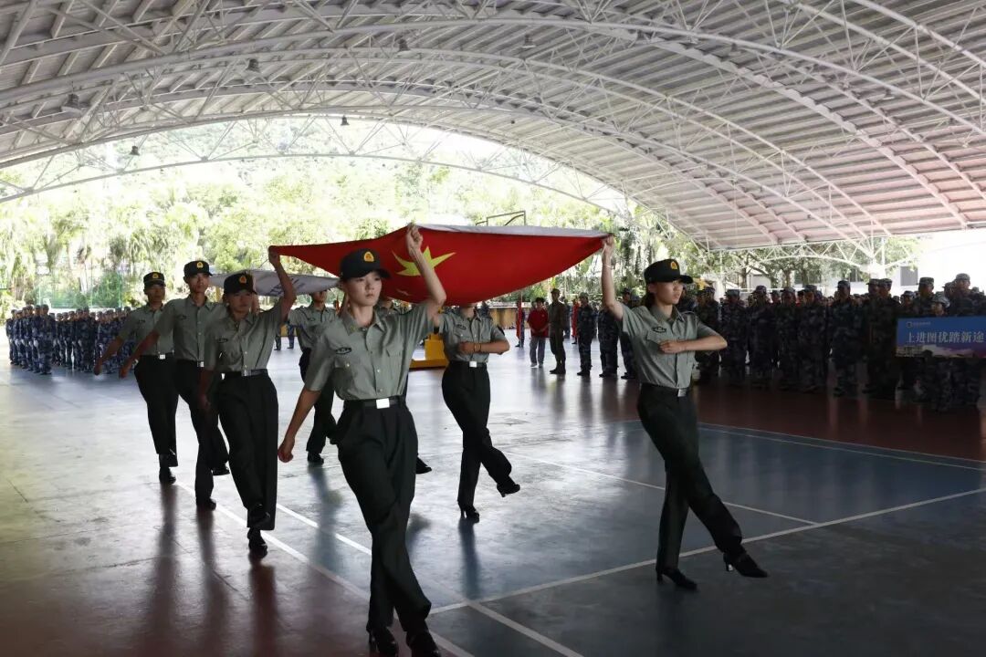 会上,优秀标兵代表分享了军训中的难忘经历与深刻感悟,真挚的话语打动了每一位在场者;吉阳区人民武装部参谋作为承训单位代表发言,充分认可了同学们在军训中的蜕变与进步;校领导的讲话饱含殷切期望,为同学们未来的成长之路清晰导航,让青春奋斗的目标更加明确。