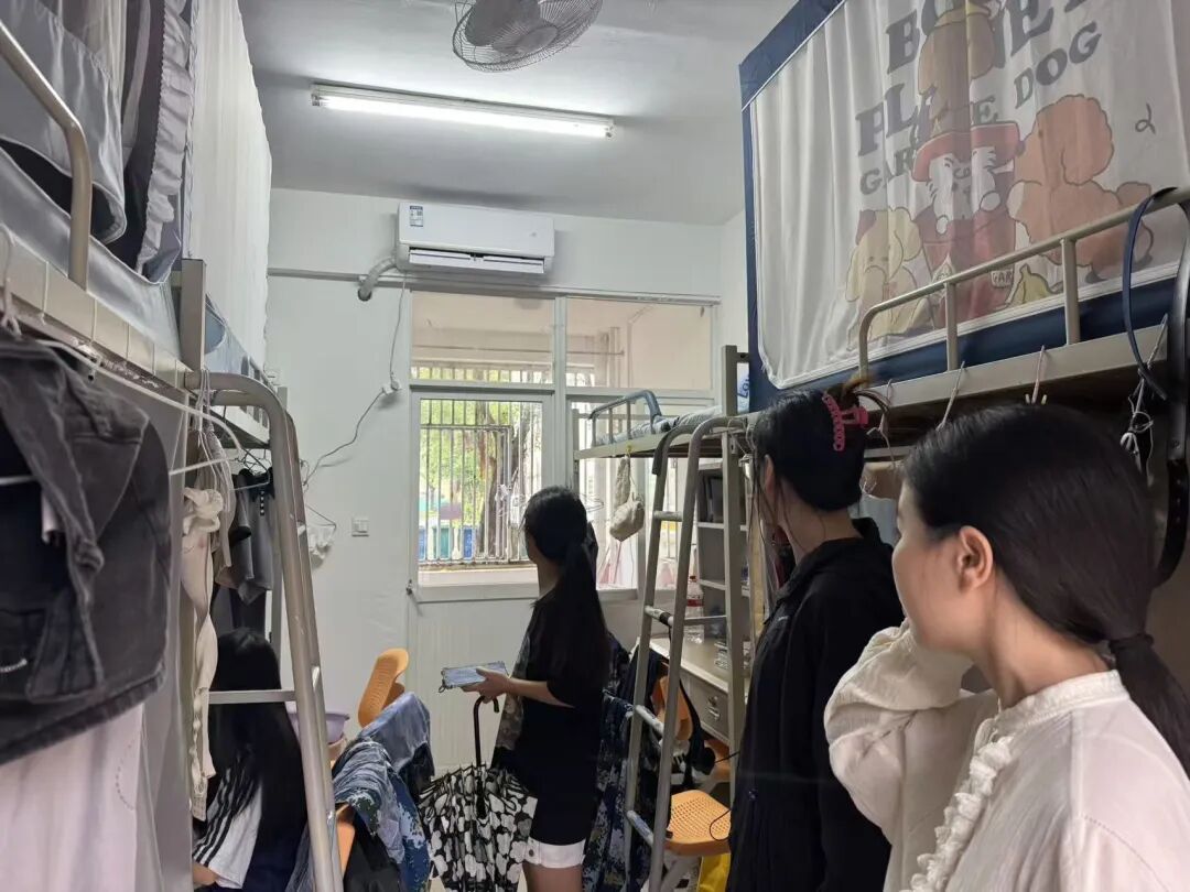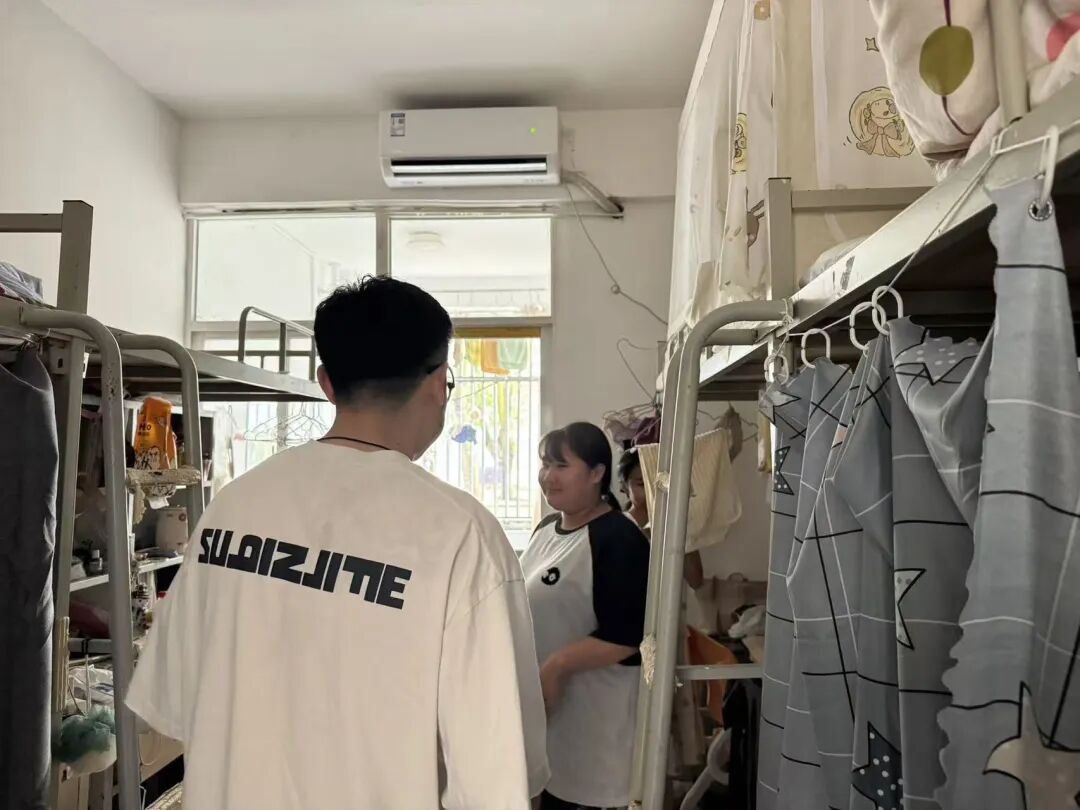 检查过程中,老师们反复叮嘱同学们:“台风天气风力强、雨量大,尽量留在宿舍,千万不要外出,避免被高空坠物砸伤或涉水遇险。”同时,还提醒大家提前备好饮用水、常用药品等物资,注意用电安全,若遇到紧急情况及时联系辅导员或宿管,用细致的关怀为同学们筑牢台风天的安全防线。