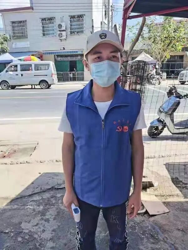卓山捷同学,在海南陵水南平农场五一队市场门口担任疫情防控志愿者,工作内容就是给每天进出市场的居民测量体温,工作时只能站着,每天工作下来8--9小时,虽然很累,但内心却是幸福的。因为疫情期间做好防护工作,人人有责,身为一个大学生更应该做好,做志愿者是为了回报社会、服务社区、服务人民 ,为抗击疫情贡献自己的一份力量 。